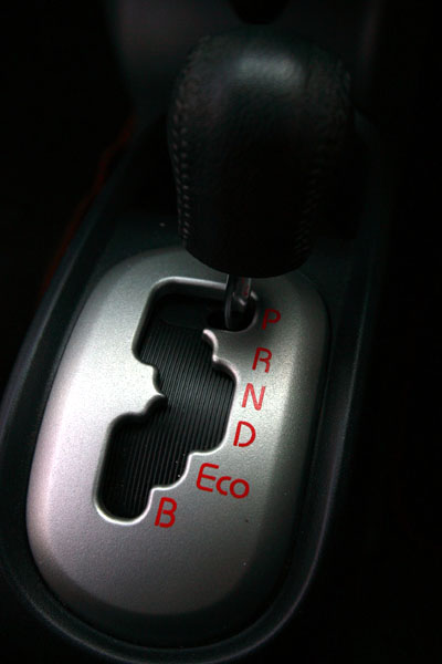 Daca priviti levierul transmisiei, care seamana perfect cu cel de la o cutie de viteze automata, veti observa setarea „Eco” (click pe foto pentru marire). Care limiteaza viteza si demarajul pentru a minimiza consumul. Acest sitem reactioneaza la kick-down (pedala „blana”), oferindu-va sprinteneala necesara in cazul unei depasiri, dupa care comportamentul redevine „Eco”.