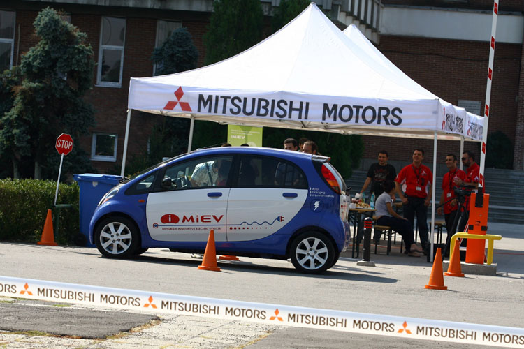 Mitsubishi ne-a oferit placerea si surpriza de a conduce modelul i-MiEV, unul din cele (sub) 100 de exemplare prototip existente acum in lume. Mitsubishi i-MiEV este un automobil „electric plugin”, adica unul care se reincarca de la priza, chiar din reteaua casnica. Minitestul s-a desfasurat in parcul Politehnicii din Bucuresti, intrucat micutul pokemon avea volanul pe dreapta. Pana la ora testului bucurestean masina a rulat numai in Japonia, tara in care circulatia rutiera se desfasoare pe partea dreapta a drumului.
