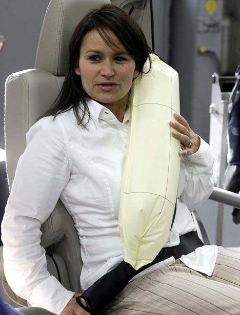 airbag-cilindric-centura-2 Pasagerii fragili si persoanele in varsta vor fi cei ce vor beneficia in primul rand de airbagurile cilindrice, care se intind de la catarama de prindere a centurii si pana peste umar, fiind plasate intr-un buzunar cusut chiar pe centura. Tehnologia va fi introdusa anul viitor pe Ford Explorer, in Statele Unite. In cazul in care testele se vor incheia cu succes, centura gonflabila va echipa si masinile europene, incepand cu cele din Marea Britanie.